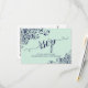 These beautiful RSVP cards will make it easy for your guests to respond to your wedding invitation. They feature an elegant design with navy blue script calligraphy on a neo mint green background, and lacy floral curls and swirls in the corners. The back of the card is a form for your guests to fill out and return indicating if they can attend or not, the number of guests they're bringing, and their choice of meals. There is also space for a website so your guests can respond online if it's more convenient for them.