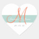 Use these beautiful Heart-shaped Mint Green and Orange Monogram Names Wedding Stickers to label your wedding favours or as wedding invitation envelopes seals. Design by Elke Clarke© for the Monogram Gallery. This design is simple, yet classic and fits with any invitation and wedding theme. THE MONOGRAM GALLERY allows you to customise the names, monogram, wedding date and colours of the text. Just click on the "CUSTOMIZE" button and follow the prompts. Need a different colour line? Contact designer. Perfect for spring or summer weddings.