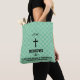 Mint green geometric pattern Christian tote bag, featuring a cross. You can customise the text, including your own initials (or name if you prefer), your favourite book of the Bible, the chapter and verse, and you can include a short quote from the verse - or simply delete the quotation if you like to keep the design as just a simple book-chapter-verse style.