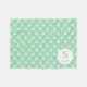 Cute dog paw prints pattern on a mint green background colour. One corner features a white circle with a customisable monogram and name.