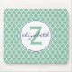 Mint green and white quatrefoil pattern with navy blue monogram.