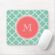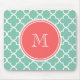 Mint Green Quatrefoil Pattern, Coral Monogram Mouse Mat