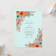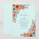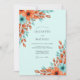 This design features a refreshing palette of mint green and burnt orange. Watercolor floral blooms in terracotta tones are accented by soft teal leaves and sprigs. The artwork captures a bright and airy aesthetic, blending warm earthy colors with a cool, crisp background for a graceful natural style.