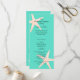 Tall, beach themed wedding program template paper in mint green with large starfish, or sea stars. Use both sides to personalise for the marriage ceremony. Printed on flyer paper, this is a cheap way to have pretty programs for your wedding ceremony.