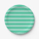 Mint green stripe pattern paper plates | Cute Holiday and celebration party supplies. Disposable dinner party supplies printed for baby shower, birthday, Christmas, wedding, bridal shower, bachelorette, housewarming, graduation celebration etc. Strong quality for adults and children. Printed zigzag striped pattern. Change the quantity to get the cheapest price per plate.