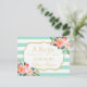 Mint Green Stripes Floral Bridal Shower Recipe Postcard