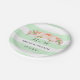 Customisable name wedding plates in mint green and white stripes pattern with peach pink watercolor vintage flowers.