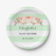 Mint Green Stripes Pink Floral Baby Shower Plate