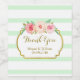 Custom text wine label in mint green and white stripes pattern with light blush pink vintage watercolor flowers and gold frame. Can be customised for any occasion, perfect for bridal showers, weddings, baby showers and birthday parties.