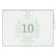 Simple with chic elegance describes this sophisticated Subtle Damask Wedding Table Number Card with a light mint green damask flourish background. This classy table card is perfect for a traditional wedding and can be easily customised with a table number(s) or your wedding details. For more customisation options, click on the Customise It button.