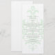 Simple with stylish elegance describes this sophisticated Subtle Damask Wedding Menu Card with a light mint green damask flourish background. This classy menu is perfect for a traditional wedding and can be easily customised with your wedding details. For more customisation options, click on the Customise It button.