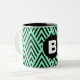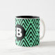Mint Green Trendy Chevron Pattern Monogram Two-Tone Coffee Mug