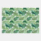 Modern wrapping paper sheet set with tropical leaves and geometric patterns.