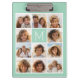 Mint Green Unique Photo Collage Custom Monogram Clipboard