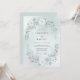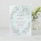 This design features a frosty palette of mint green and pale blue, perfect for a winter event. Delicate white roses and blue hydrangeas are nestled among sage green eucalyptus leaves. Sparkling light accents create a magical, ethereal atmosphere that feels like a crisp morning. The soft watercolor textures add a romantic and whimsical touch to the botanical display.