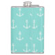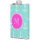 Mint Green White Anchors, Hot Pink Monogram Hip Flask