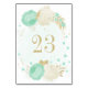 mint green &white flowers gold floral wedding table number