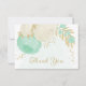 mint green & white flowers with gold leaves wedding thank you card.