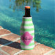Mint Green Wht Horiz Stripe HP Name Init Monogram Bottle Cooler