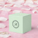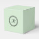 A personalised favour box in mint green featuring a black laurel wreath and custom monogram that you can edit with your own monogram. To change the font or if you need to re-centre the monogram after changing it, select the "customise it" button. This favour box makes a nice choice for receptions, parties, corporate events, and more.