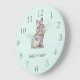Mint Grey Bunny Nursery Decor Wall Clock