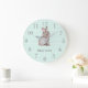 Mint Grey Bunny Baby Boy Nursery Decor Wall Clock