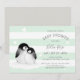 Mint grey penguins baby shower invitation