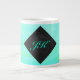 Mint Ice Blue and Black Monogram Large Coffee Mug