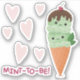 Cute hand-illustrated mint ice cream cone with hearts and punny message.