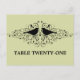 Sweet and simple Love Bird Swirls Table Number Postcard featuring silhouettes of a pair of whimsical birds and cascades of elegant swirl flourishes on a mint green background. This modern table number card is easy to customise with the appropriate table number(s). Click on "Customise It" to find more personalisation options.