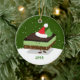 A fun food Christmas ornament featuring a smiling mint Nanaimo bar wearing a Santa hat. The happy dessert bar is standing on a snowy background and the design includes a customisable year. You found this ornament, so clearly it was Mint to be. Simply add your year, add this ornament to your cart, and enjoy it on your Christmas tree.