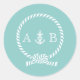 Mint Nautical Rope and Anchor Monogram Classic Round Sticker
