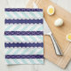 Mint, Navy Blue, White Geometric Striped Pattern Tea Towel