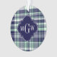 Mint Navy White Preppy Madras Quatrefoil Monogram Ornament