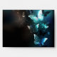 Mint night glowing butterflies on black abstract background.