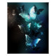 Mint night glowing butterflies on black abstract background.