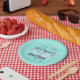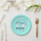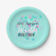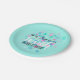 Customisable 100th Birthday paper plate with black and white lettering on abstract design of small squares in aqua mint colour background (customisable). Matching birthday paper napkin, birthday guest book, birthday save the date and birthday gifts like pillow... Other models are available.