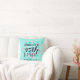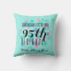 95th Birthday Pillow with customisable black lettering on abstract design of small squares and aqua colour background (customisable). Other models in pink and purple available.