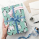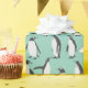 Mint Personalised Penguin Pattern Wrapping Paper. This cute collection of Penguins all decked out for the holidays is personalised with your family name and message of love. A joyful greeting to all your family and friends and a special thoughtful way to present them with a personal message just from you!
