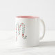 Mint Pink Floral Letter M Two-Tone Coffee Mug