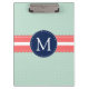 Mint Polka Dot Pattern Coral Navy Blue Monogram Clipboard