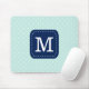 Stylish mousepad design in mint and navy blue colours, easily personalised monogram. Great mousepad for every office or home.