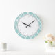Custom designer wall clock features an elegant and Moroccan quatrefoil tiles pattern vector illustration.