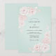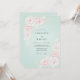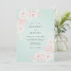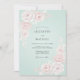 This design features a serene mint green backdrop adorned with delicate blush pink roses. The watercolor style creates a soft, ethereal mood perfect for a romantic spring or summer event. Lush botanical elements and leafy accents decorate the design with elegance and grace. The palette blends pastel tones with natural floral beauty to capture a timeless aesthetic.