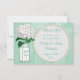 Elegant mint green and white thank you wedding flat cards, for newly weds to send to their wedding guests, with a cute green and white glass Ball mason jar and white hydrangea vintage flower illustration on a stylish antique shabby chic collage with beautiful white ornate decorations, a dragonfly, and faded writing on a stylish mint green harlequin pattern background. On the reverse of the invites is a glamourous printed white pearls and lace mat with text for you to personalise with your event details. Classy, trendy, fashionable modern girly invites. All of the text can be easily customised to meet your needs and you can change the font style, colour and size of font if you desire. I have matching wedding products in my store. If you need any assistance customising your product please contact me through my store and I will be happy to help. Pearl mat by ©Hazel Kinvig-Paul www.design-a-dream.co.