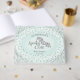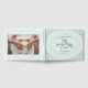 This elegant pastel Mint Spooky Cute Bats Halloween Baby Shower Guest Book features a chic hand-drawn baby bat flying among a night sky full of yellow stars and moons, all against a swirly pastel mint background and adorned with spiderweb corners. The back features a photo. Personalise with your event details on the front cover and the binding.