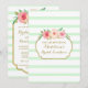 Mint Stripes Gold Pink Floral Bridal Lunch Invitation
