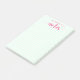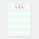 NewParkLane - Personalised post-it notes with a mint green and white striped pattern and 'Notes', in an elegant brush script typography, in hot pink.