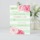 Mint Stripes Pink Flowers Gold Wedding RSVP Card