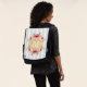 Backpack with mint striped pattern, watercolor pink flowers and faux gold foil custom monogram.